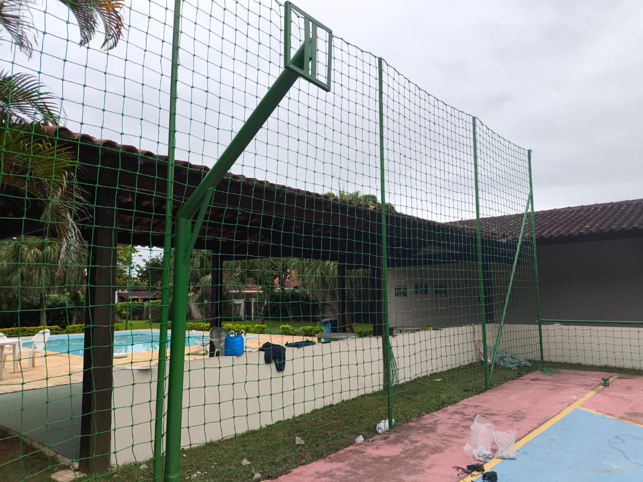 05A rede é posicionada e tensionada de maneira uniforme para garantir firmeza e estética. O tensionamento adequado impede folgas e garante que a rede suporte impactos de maneira eficiente.