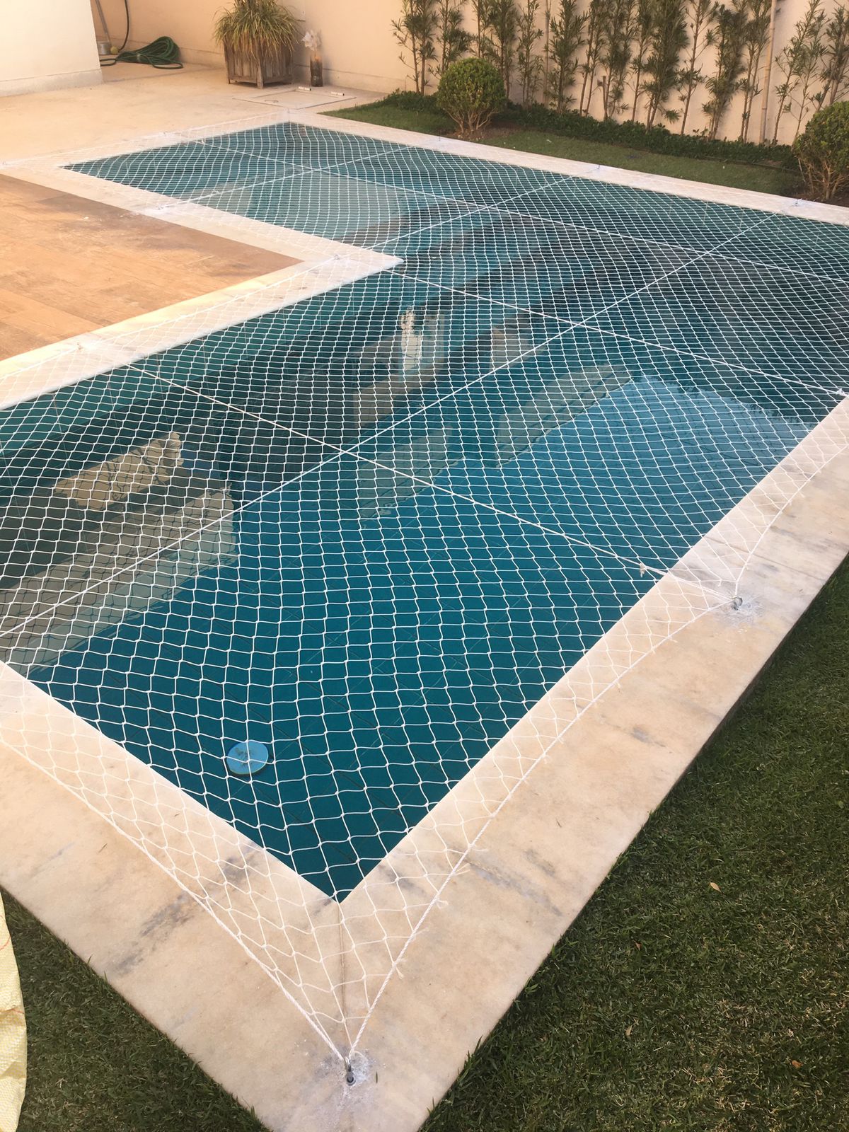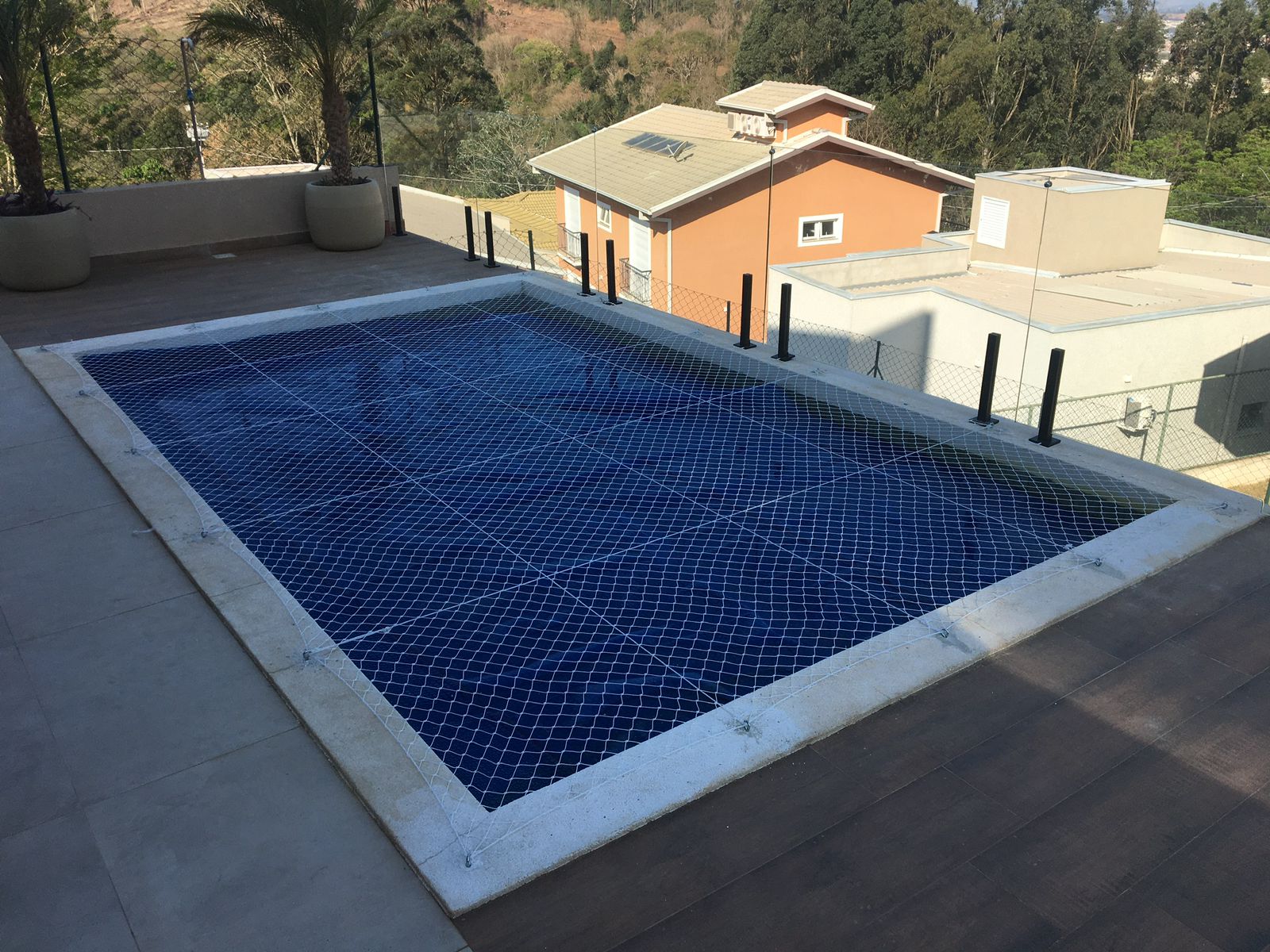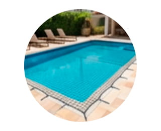 Rede resistente e projetada para impedir acidentes ao redor da piscina, mantendo o espaço seguro para toda a família.