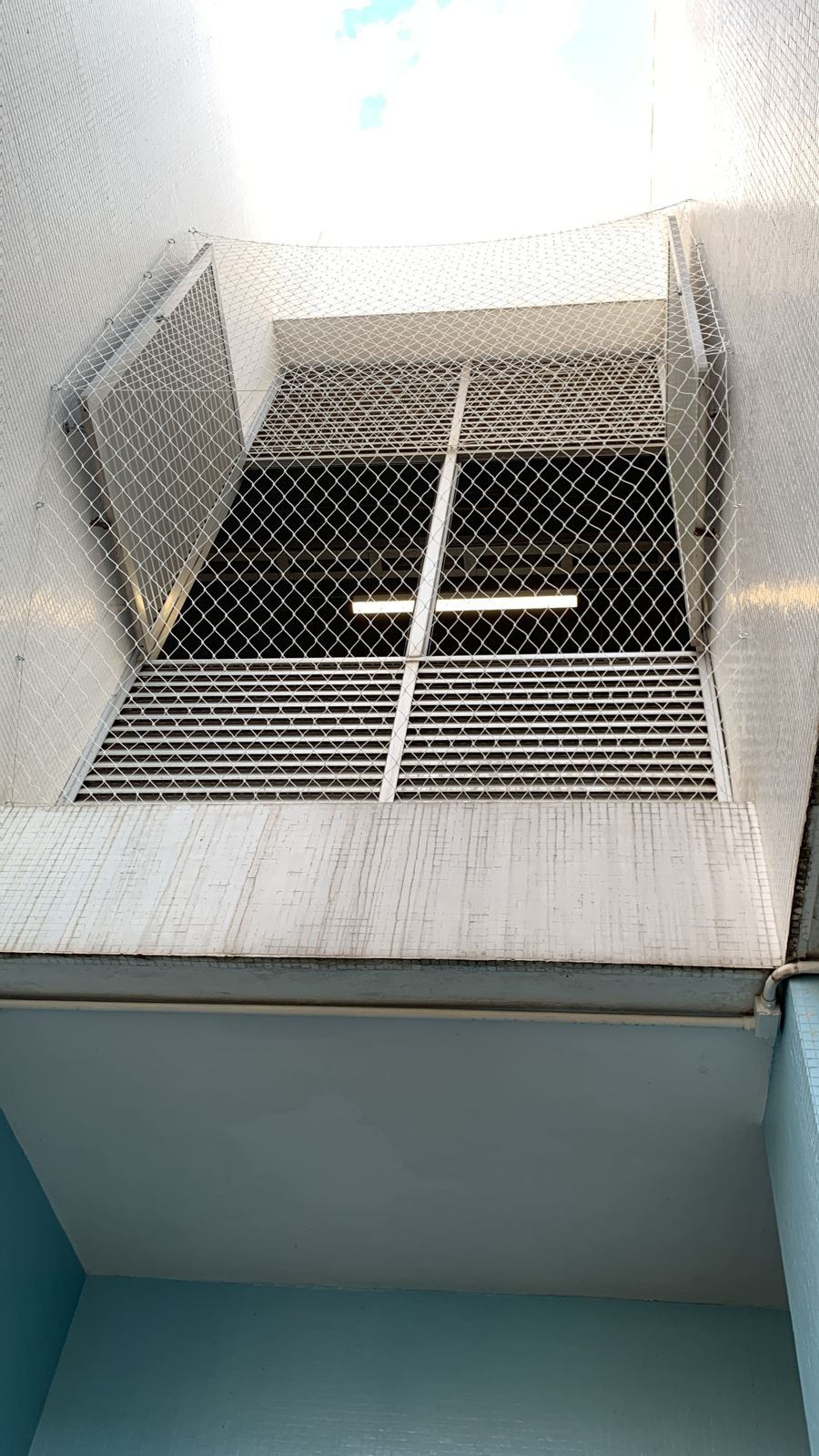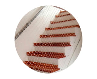Instalação de redes de proteção em escadas para prevenir acidentes, oferecendo segurança adicional para crianças, pets e idosos sem comprometer a estética do ambiente.